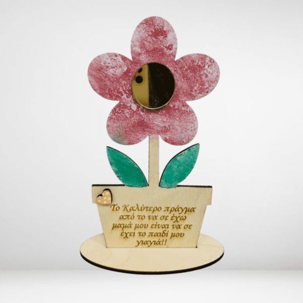 Ξύλινο διακοσμητικό βαζάκι με λουλουδια για την Μαμά με αφιέρωση