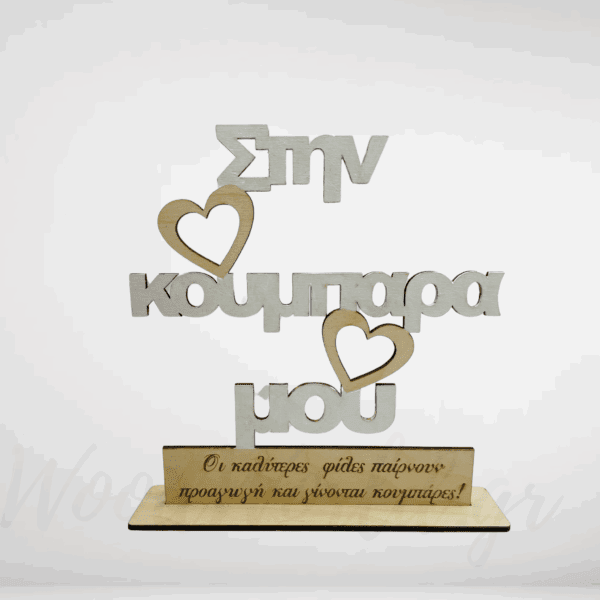 Ξύλινο Καδράκι στην κουμπάρα μου με αφιέρωση