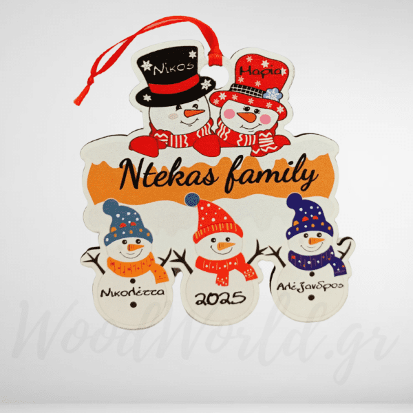 Στολίδι με χιονάνθρωπο με τα μέλη της Οικογένειας