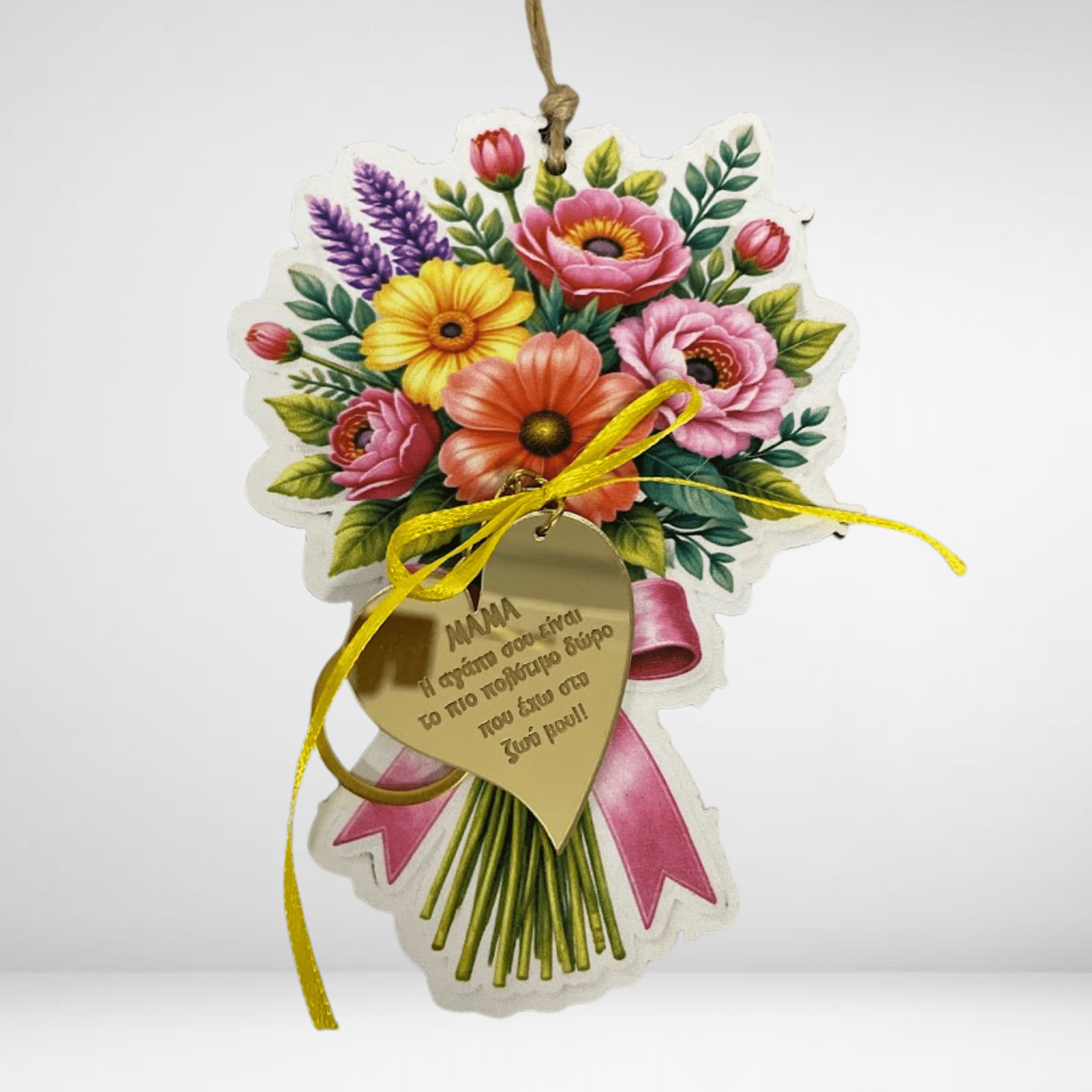 Μπρελόκ plexiglass για την Μαμά με πλάτη ξύλινη