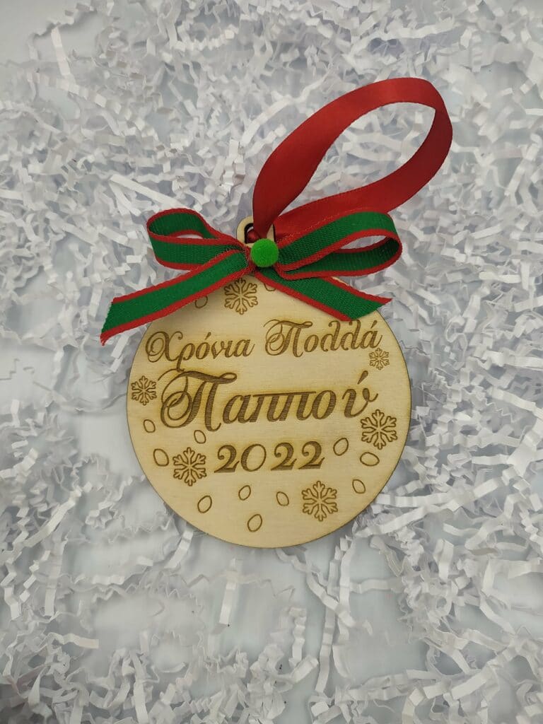 Χειροποίητο στολίδι μπάλα “Χρόνια πολλά παππού γιαγιά 2022”