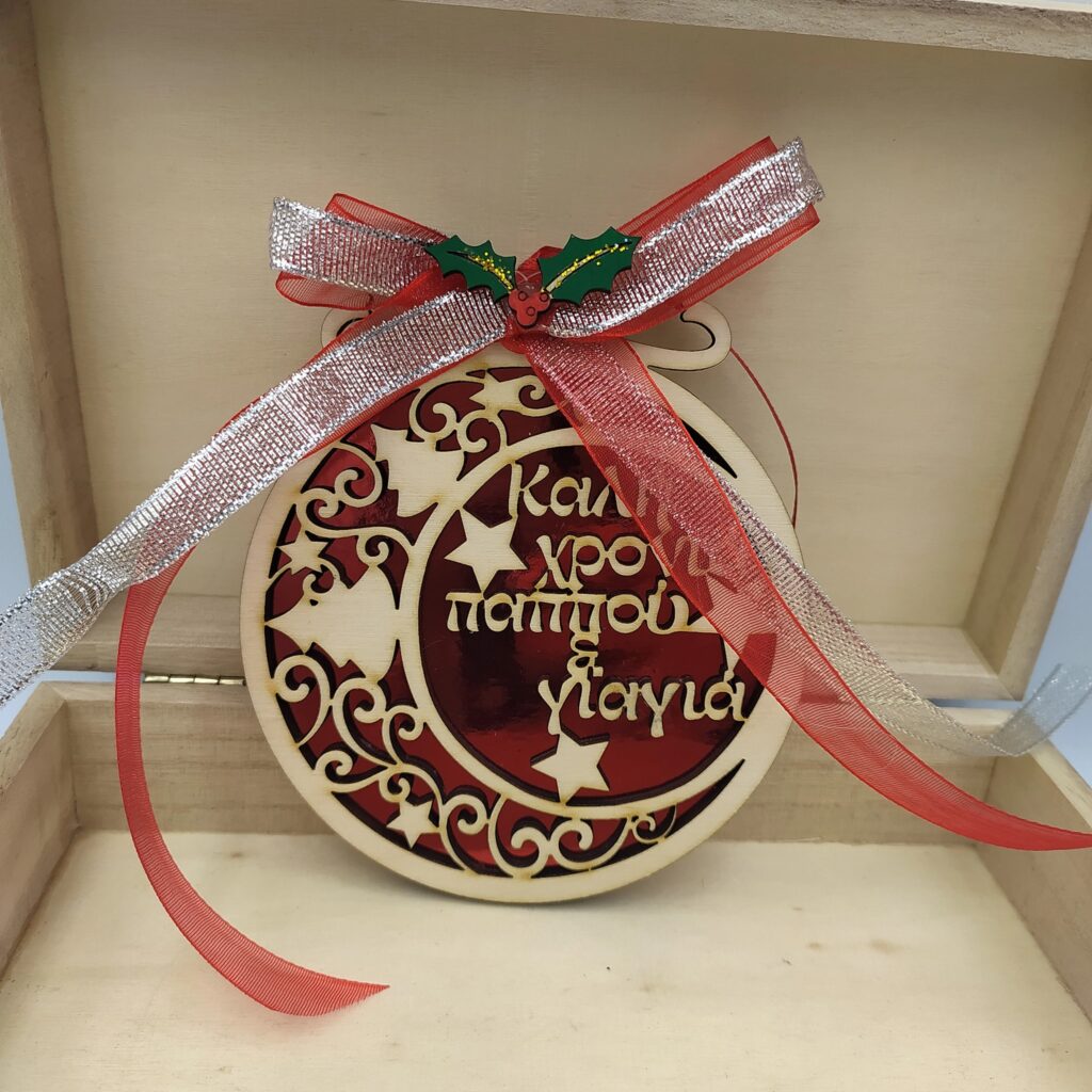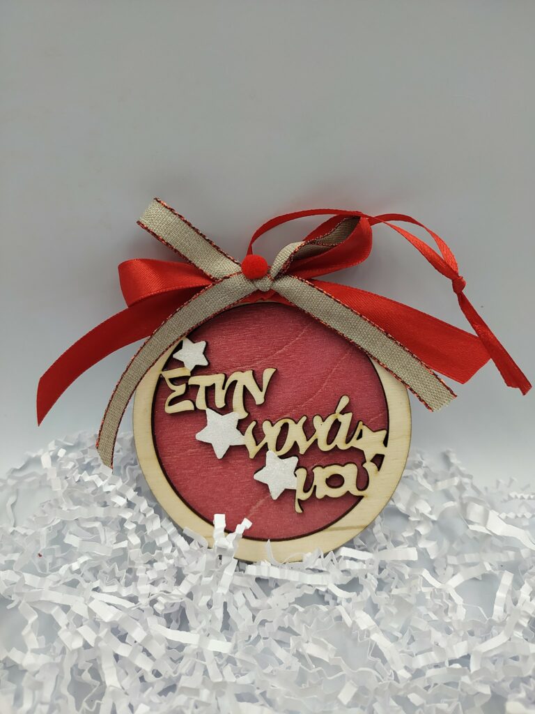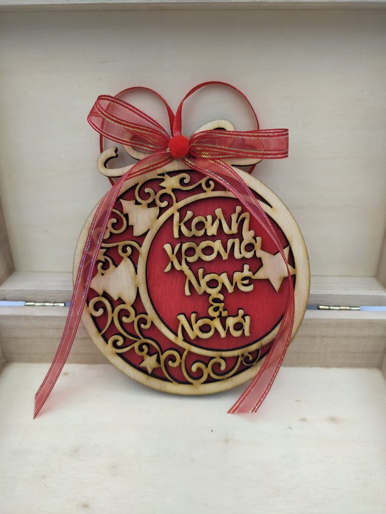 Χειροποίητο ξύλινο στολίδι μπάλα”Παππού γιαγιά”