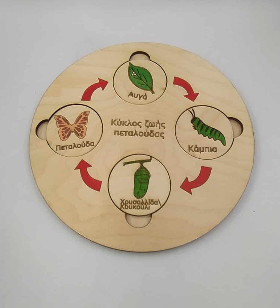Εκπαιδευτικό Ξύλινο πάζλ “κύκλος ζωής πεταλούδας”
