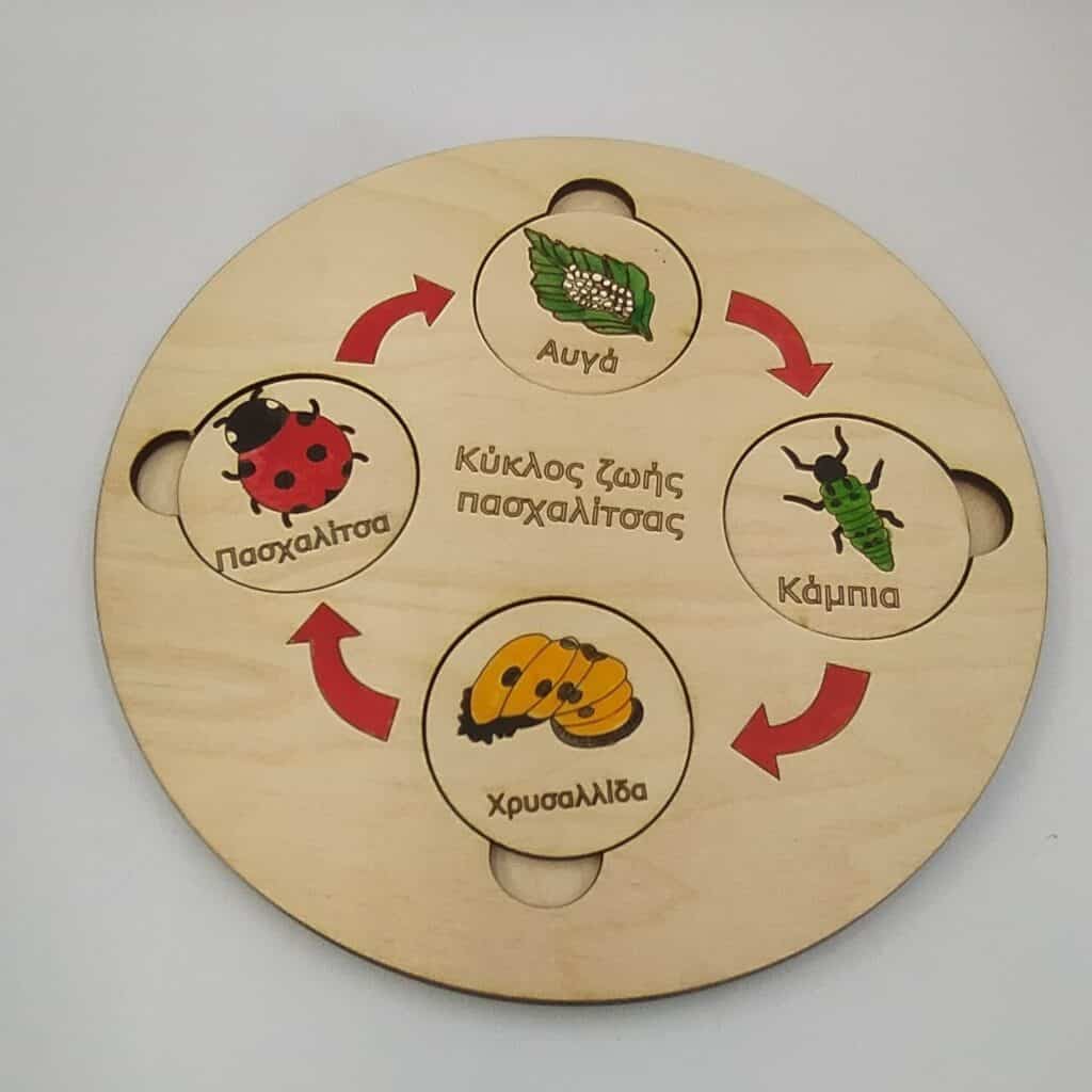 Εκπαιδευτικό Ξύλινο πάζλ “κύκλος ζωής Πασχαλίτσας”