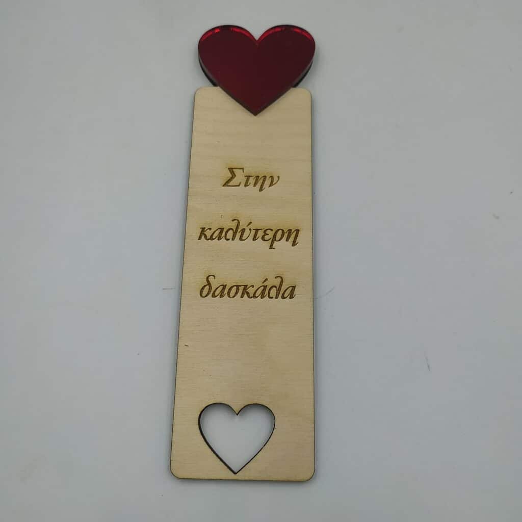 Ξύλινος σελιδοδείκτης με plexiglass καρδιά