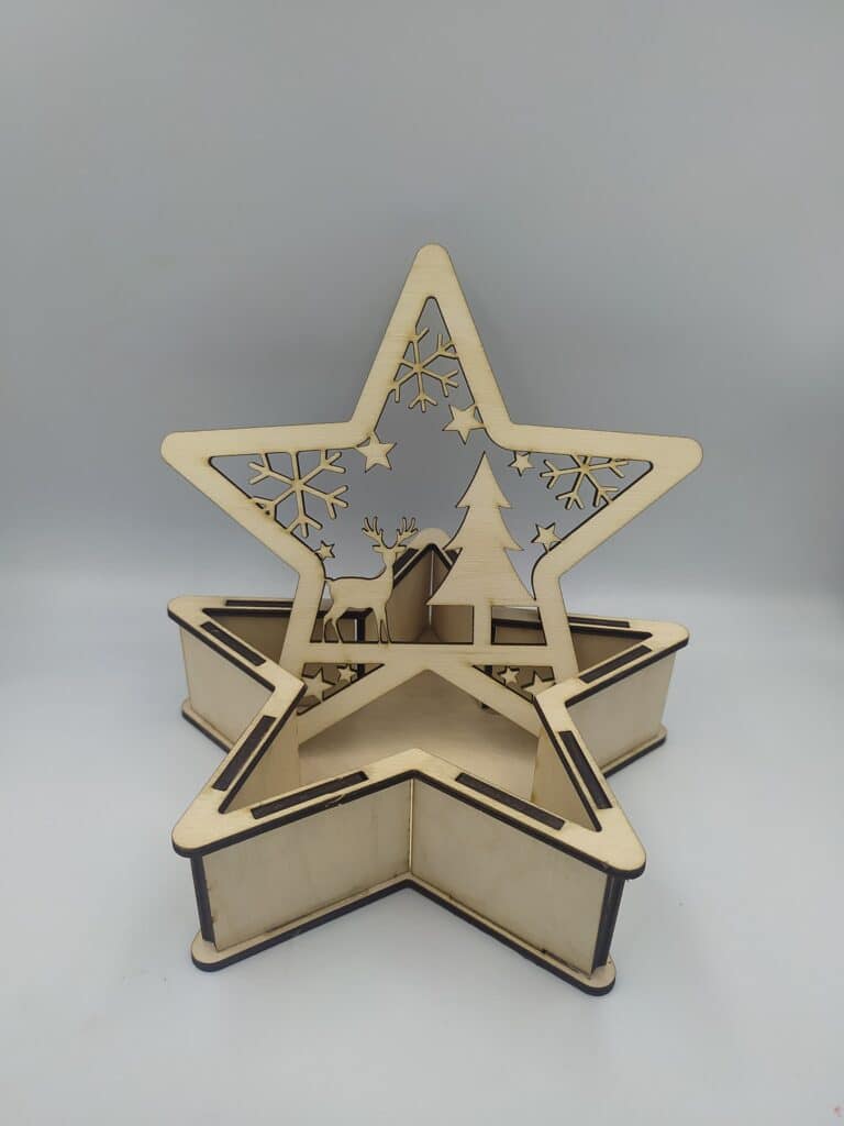 Ξύλινο κουτί με ελαφάκι και χιονονιφάδες