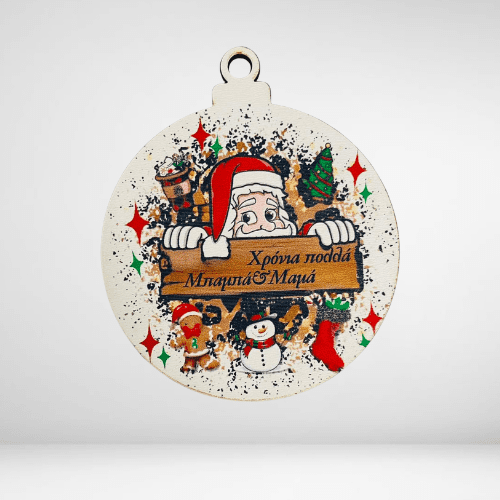 Ξύλινη μπάλα με Αγιο Βασίλη Μπαμπά&Μαμά