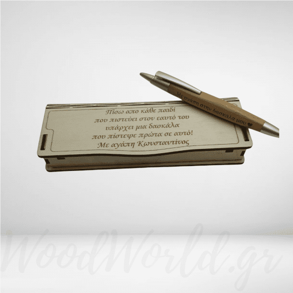 Χειροποίητο ξύλινο κουτί με στυλό και αφιέρωση